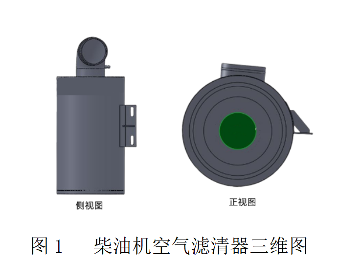 空氣濾清器的功用是濾除空氣中的灰塵及雜質(zhì),將清潔的空氣送入氣缸內(nèi),以減少活塞連桿組、配氣機(jī)構(gòu)和氣缸磨損。對(duì)空氣濾清器的要求是濾清效率高、阻力小、應(yīng)用周期長(zhǎng)且保養(yǎng)方便,外形三維圖如圖1所示。
