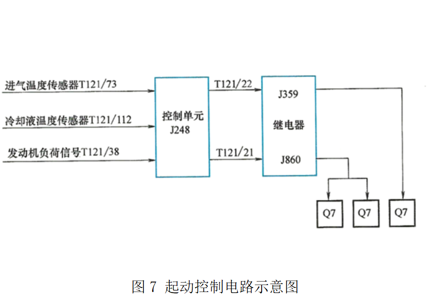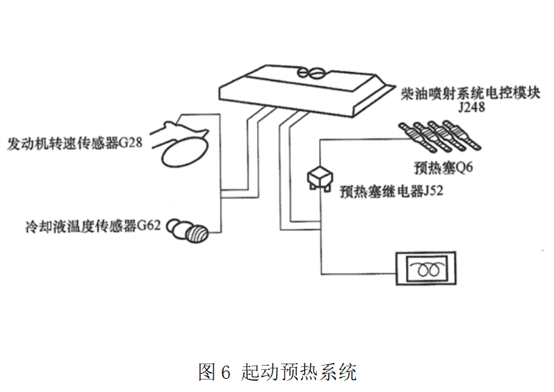 ③ 電控模塊控制型電路,起動預(yù)熱系統(tǒng)(如圖6所示)